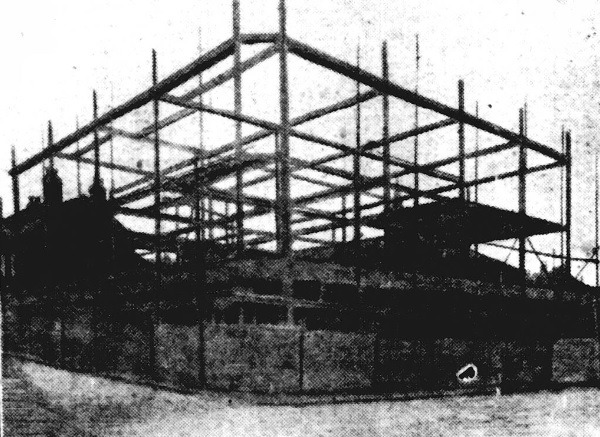 This photograph was taken by Robinson & Kershaw in 1928 and shows the steel framework looking from Attercliffe Road. Shortridge Street is to the left. It provides an important clue as to how construction was completed in two phases. The final addition, completed by 1934, would have been to the right looking towards Baltic Road. Image: British Newspaper Archive