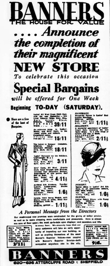 Banner was joined by his four sons – Harold, Ernest, John and Cyril – each becoming co-directors after gaining experience, and two of his three daughters worked in the Attercliffe business, as well as at a new shop on Barnsley Road at Fir Vale.