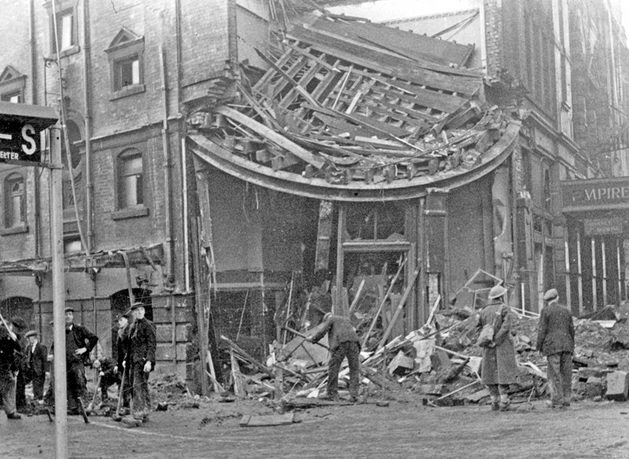 “One of the first incendiaries landed in front of the Empire just before we were due to appear. The manager, Fred Neate, dashed round and asked me to play one number, then announce that there was a fire and would the audience please leave as quietly as possible.
