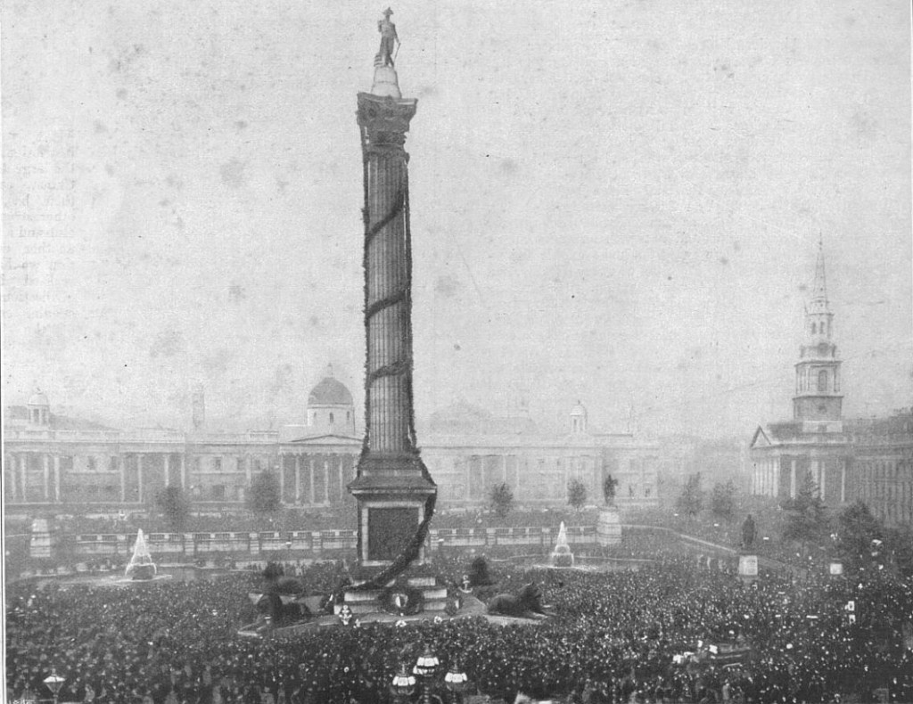 Nelson’s Column had been built to commemorate Vice-Admiral Horatio Nelson’s decisive victory at the Battle of Trafalgar over the combined French and Spanish navies, during which he was killed by a French sniper. It was constructed between 1840 and 1843 in Dartmoor granite, to a design by William Railton.