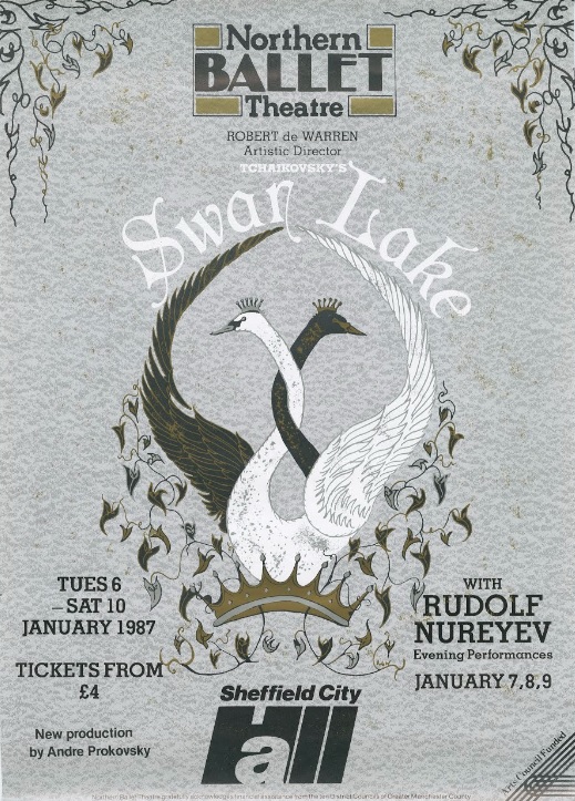 I’ve been emailed a poster for a Northern Ballet Theatre production of Swan Lake, starring Rudolf Nureyev, at the City Hall in January 1987. It came with a note saying that there used to be a photograph of Nureyev standing on the City Hall steps but had since disappeared.