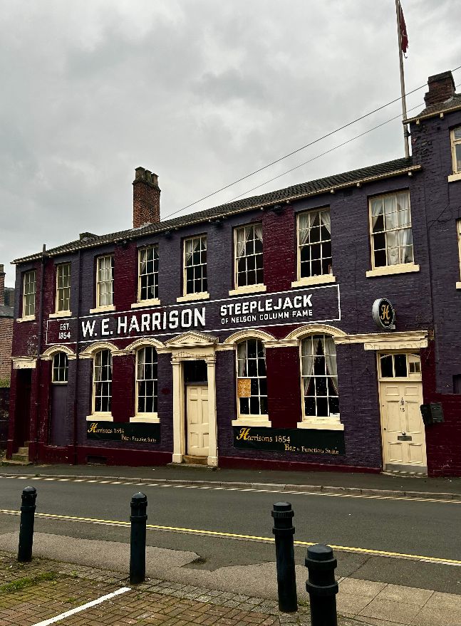 W.E. Harrison, Steeplejack, was situated on Regent Terrace, off Glossop Road, Sheffield. The Grade II listed building was recently home to a bar, appropriately called Harrison’s Bar. Image: DJP / 2024