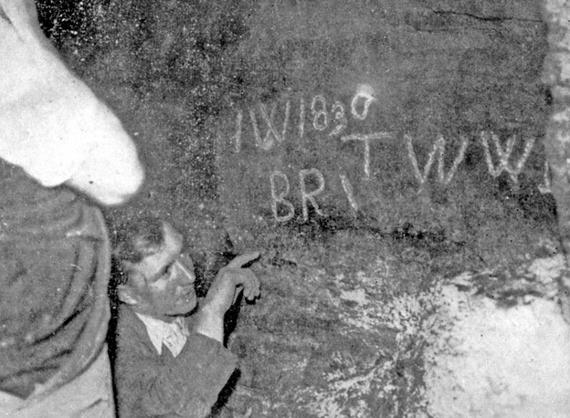 “On one of the rock walls were the following letters ‘I.W. 1830’ then just below ‘B.R.’, a dash and then ‘T.W.W.B.'”