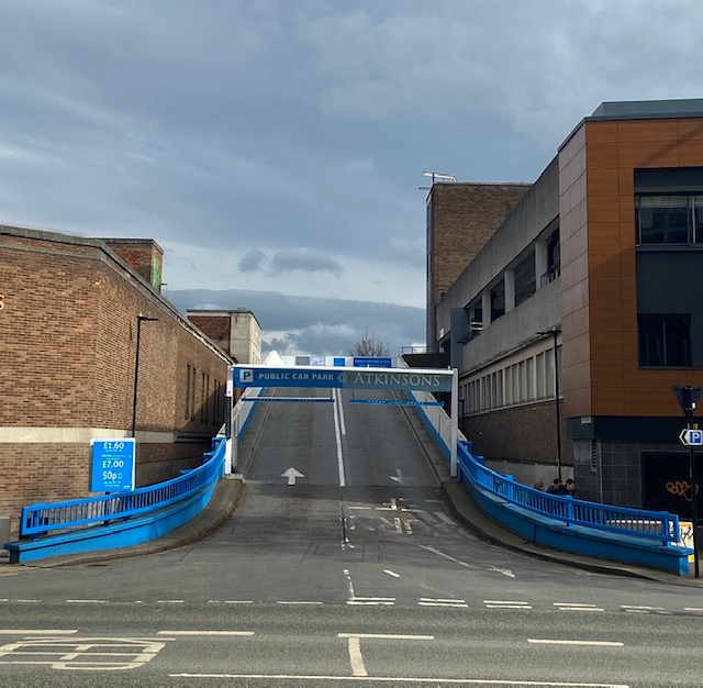 Most of it remains hidden underneath the huge concrete ramp that allows drivers to enter the multi-storey carpark above Atkinsons.