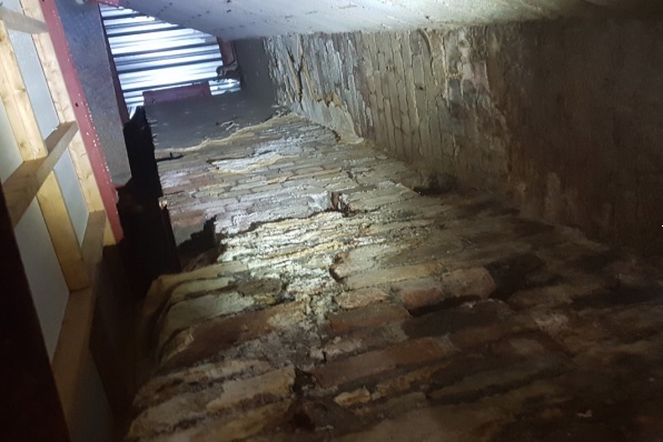 However, by the 1960s the building was in serious decline. Most of the offices were empty, with no inclination to find new tenants. Worst of all, the building had become dangerous, with masonry crumbling from above, and it was boarded up at ground level to prevent serious injury to passers-by.