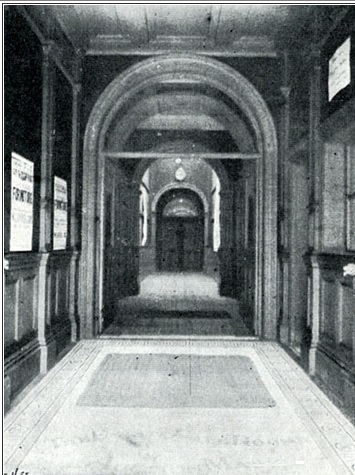 Entering from Church Street through folding oak doors, the visitor found themselves in a bright vestibule with mosaic floor. To the right was the cashier’s office and to the left a telephone room. Through a passage past the cashier’s office were the private rooms of the principals of the firm.
