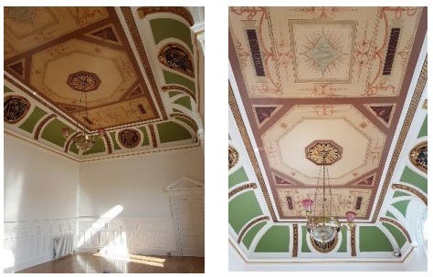 Vacancy led to dereliction through rainwater ingress caused by the stripping of lead from the roof by vandals, and the theft of period fireplaces.