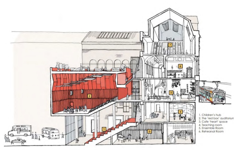 The proposed development would include a performance space for an audience of 300, two rehearsal rooms accommodating 80 musicians, 15 smaller ensemble rehearsal rooms, 20 individual practice rooms and a substantial instrument store.