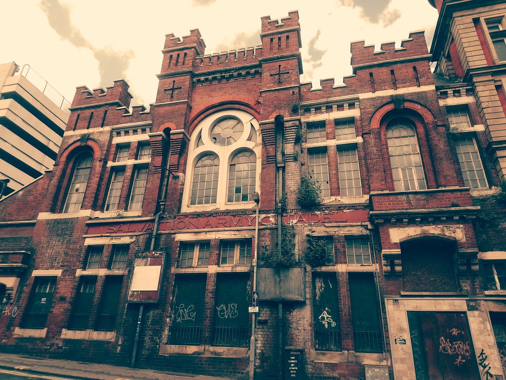This photograph says it all. Trees and bushes growing out of the brickwork of the Grade II-listed Salvation Army Citadel on Cross Burgess Street, Sheffield. A favourite of urban explorers, this remarkable looking building has stood empty since the Salvation Army moved to Psalter Lane in 1999. The building’s future looks a little brighter, with Tandem Properties currently awaiting a planning decision to turn it into a bar and restaurant, the development forming part of the Heart of the City 2 project.