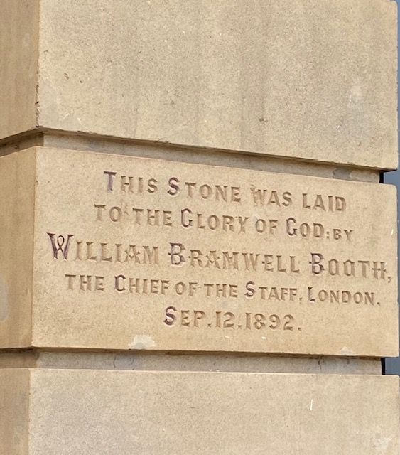 For all to see. This stone was laid by William Bramwell Booth, the Salvation Army’s Chief of Staff. It can be seen to the right of the modern-day entrance. Photograph: DJP/2021