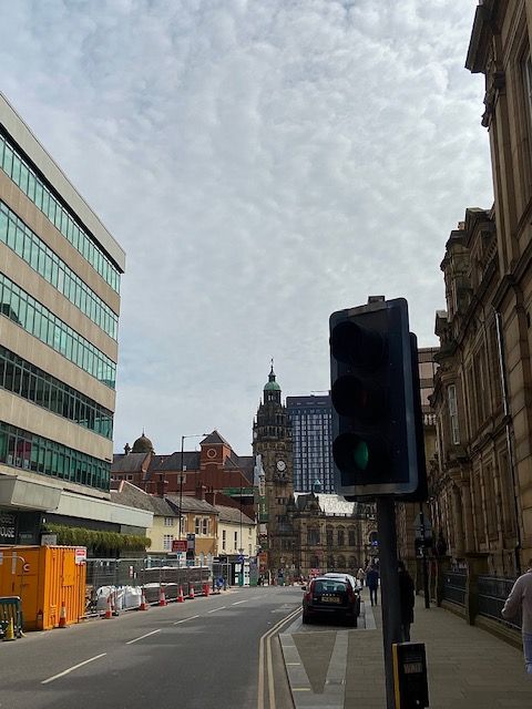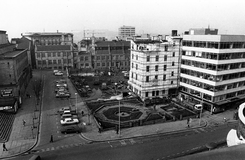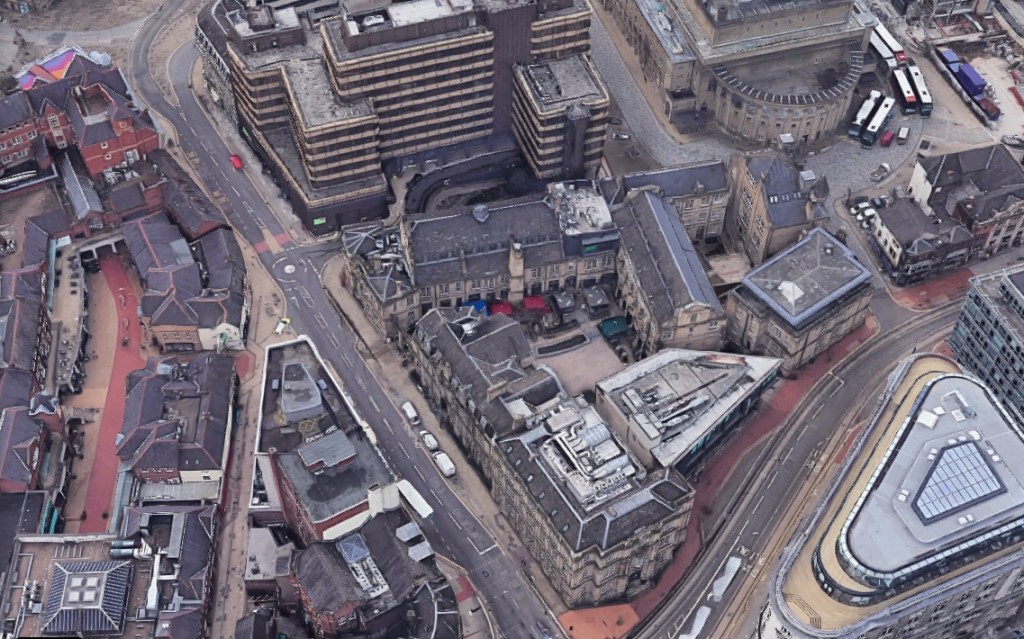 “Pinstone Street was closed for access, and so we diverted along Union Street but found it blocked by rubble from the Empire Theatre that had collapsed into the road. We climbed up and over the debris before continuing along Norfolk Street, into Fitzalan Square, then down Haymarket and on to the Wicker. Most buildings were ruined and ablaze.