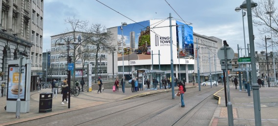 It was pedestrianised in the 1970s, and is now a building site, reinventing itself yet again, this time as a £15.8m social hub, to replace shops with event spaces, hospitality, and eating places. The paving is being changed and there will be flower beds promoting Sheffield’s ‘grey to green’ image.
