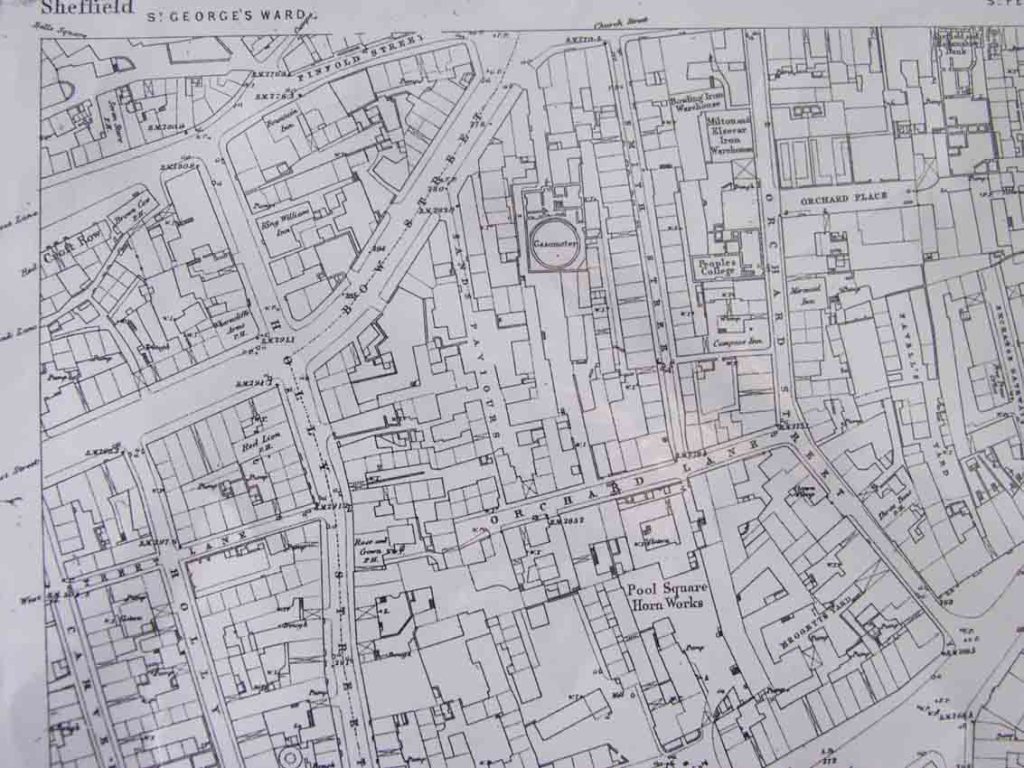 In Fairbank’s survey, what is now Barker’s Pool appears as Balm Green, while the lane now known as Balm Green was called Flint Well. In Taylor’s survey of 1832, Balm Green had been renamed Barker’s Pool, while Flint Well was known as Flint Well Lane. With the building of the City Hall, Flint Well Lane became Balm Green.
