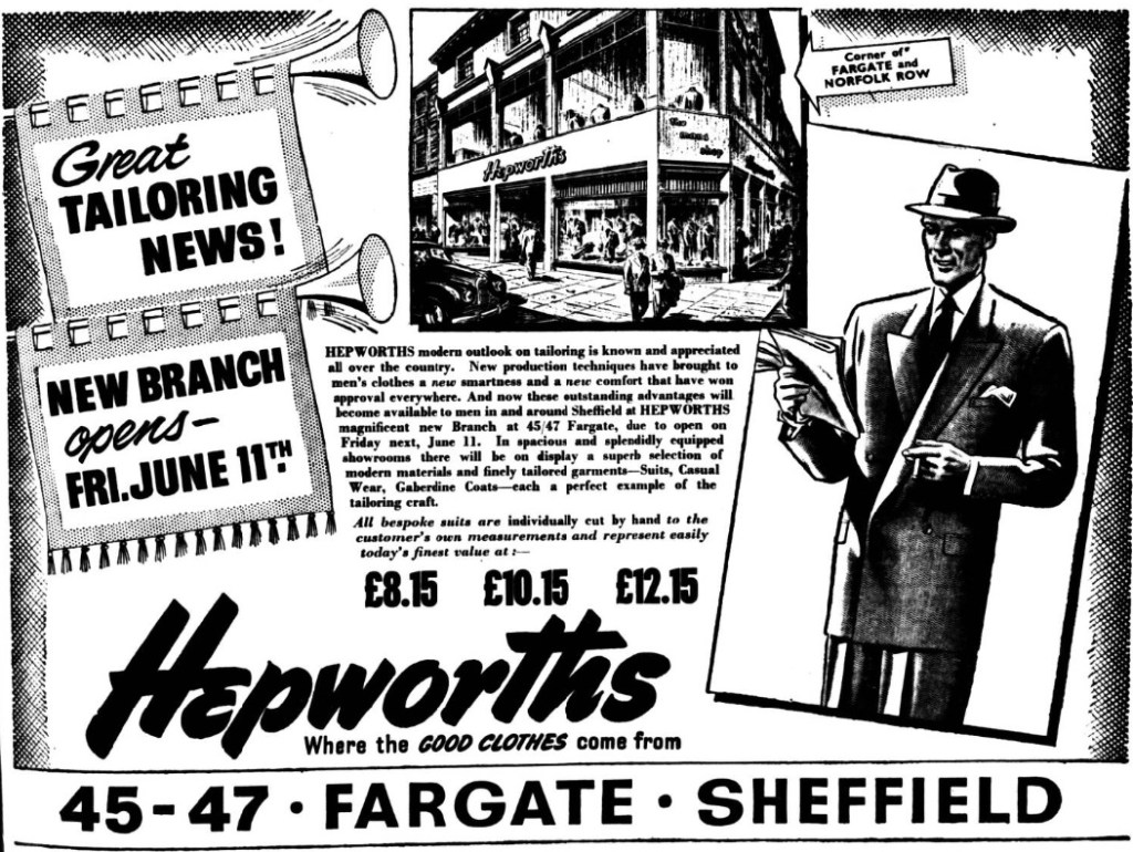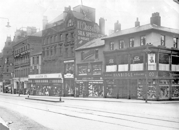 The year is 1815 and a big old town house on Fargate was demolished. It was replaced by a shop and in later years the site at its corner with Norfolk Row was occupied by Robert Hanbridge and Sons, hosier, hatters, and glovers, before becoming Hepworth tailors and finally a branch of Next.