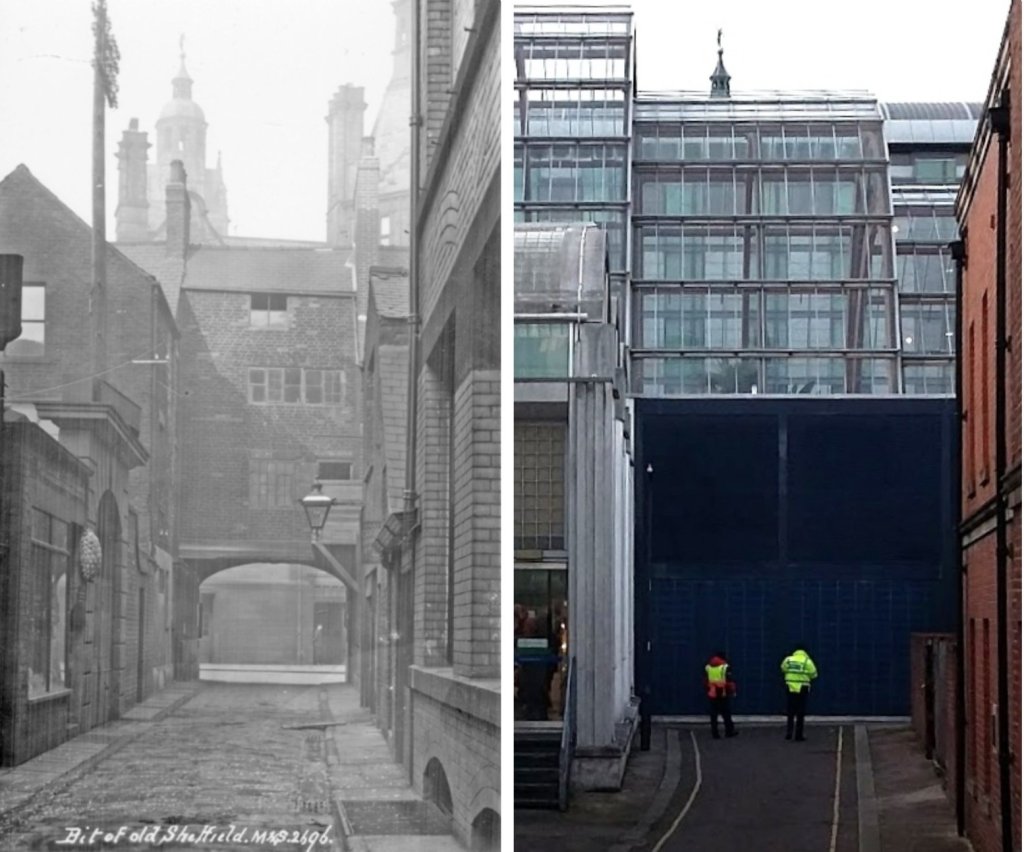 The area around Norfolk Street and Pinstone Street was drastically redesigned in the late 1800s, widening and realigning Pinstone Street which involved the demolition of many buildings including some on this site.