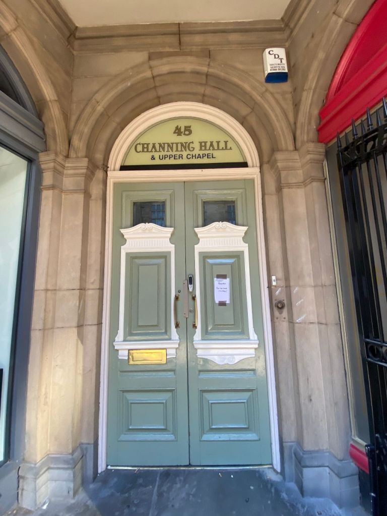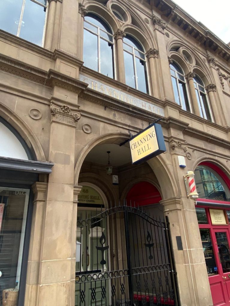 Channing Hall had been commissioned by the Trustees of the Upper Chapel on Norfolk Street and was named after William Ellery Channing (1780-1842), the father of American Unitarianism.