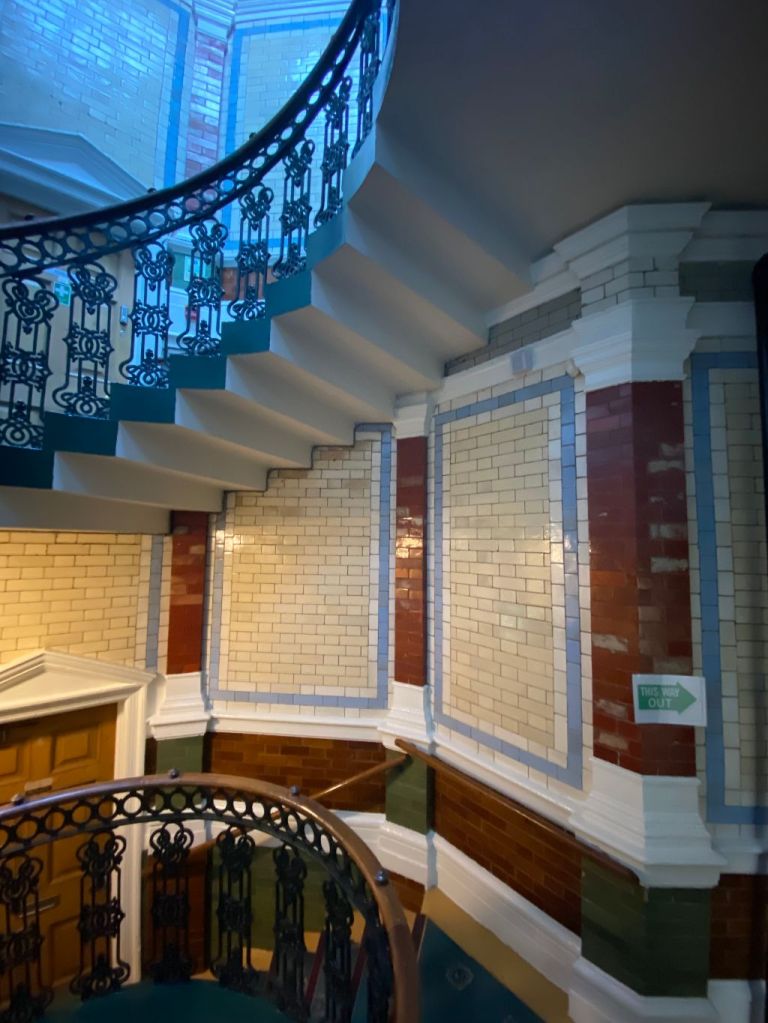 The congregational is approached by a winding staircase, at the top of which is an hexagonal stair hall, 16ft in diameter, and which is built with brick walls similar to those used in the construction of the entrance passage. Image: DJP/2022