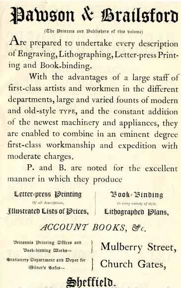 It was built in 1865 for Pawson and Brailsford, once a famous high-class printing firm in Sheffield.