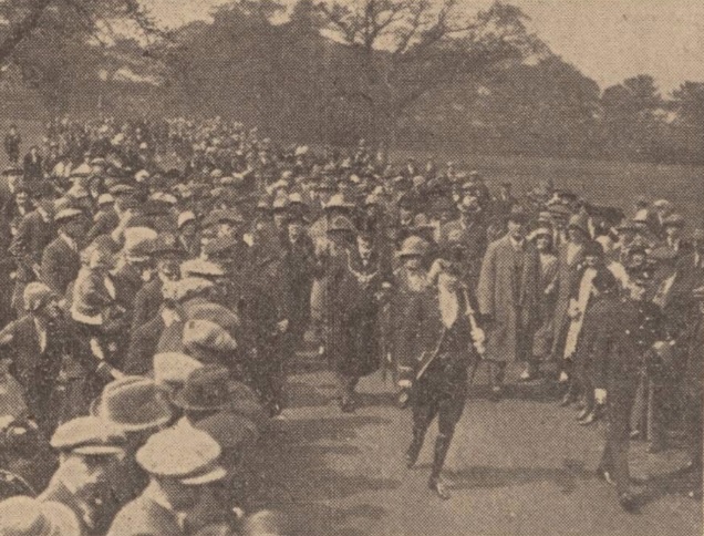 The Lord Mayor and Lady Mayoress, accompanied by Councillor and Mrs J.G. Graves head the procession at the opening ceremony.