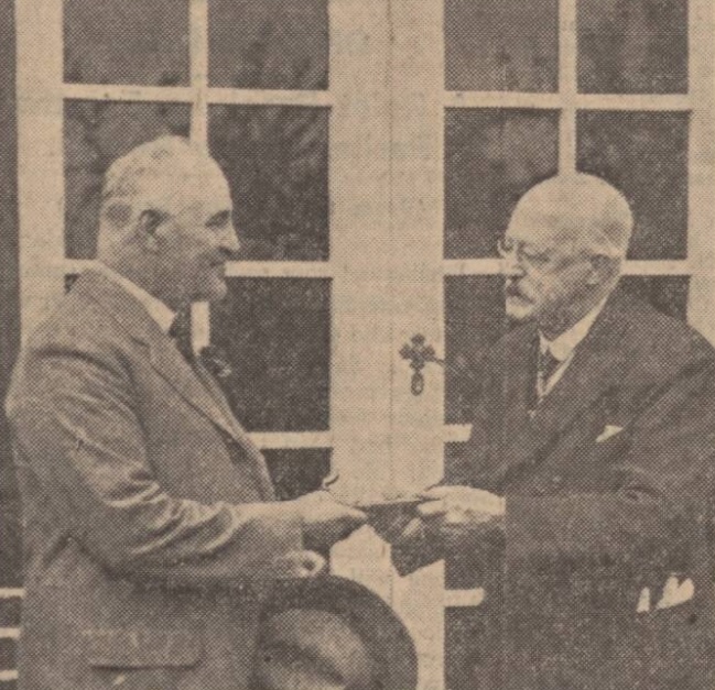 Councillor J.G. Graves and Sir William Clegg discussing horticulture at Graves Park