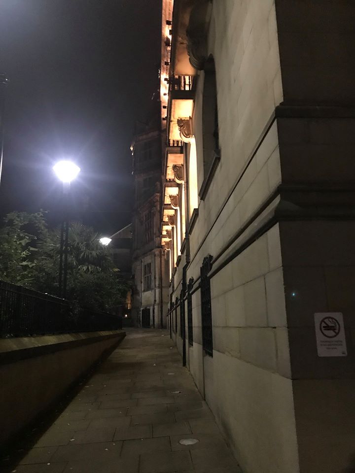 A relic of the past. Cheney Row runs alongside the Town Hall adjacent to the Peace Gardens. It is an old thoroughfare, a survivor from the days of Cheney Square, demolished during the construction of the Town Hall in the 1890s.
