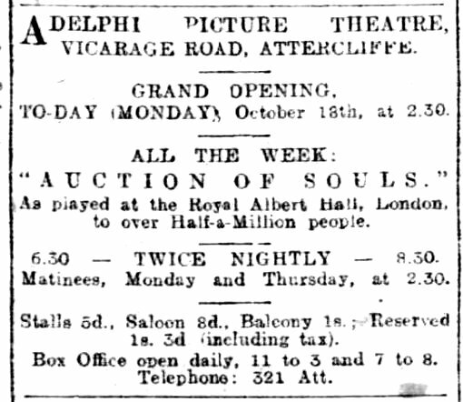 With a seating capacity of 1,350, it joined four other cinemas at Attercliffe, and it’s first showing was Irving Cummings in Auction of Souls.