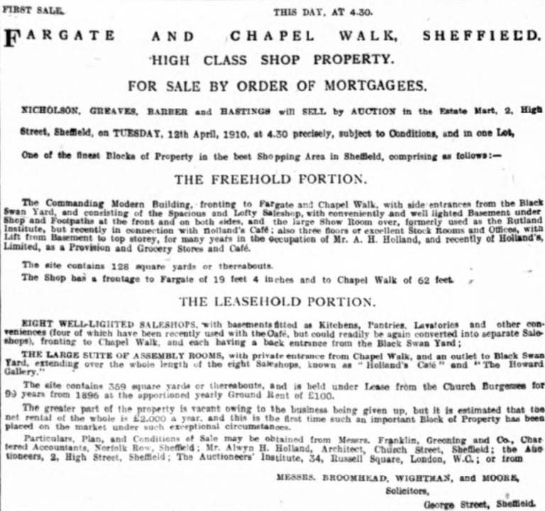 The Sheffield Directory of 1787 mentions eight victuallers on this street, quite different from the present day. But it was always a shopping street, and all this was swept away so that the sites of its old buildings could not be located with certainty.
