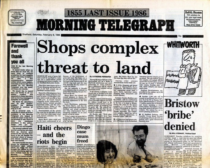 Founded in 1855 as the Sheffield Daily Telegraph, it became known as the Sheffield Telegraph in 1938, and its sister, The Star, continues as a poor ancestor.