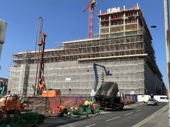 Work has started on Code Sheffield, three blocks of 12, 17 and 38 storeys costing £100m. Foundations are being dug on the site which borders Rockingham Street, Wellington Street, and Trafalgar Street, and adjacent to Kangaroo Works. Once completed it will be 383ft tall.